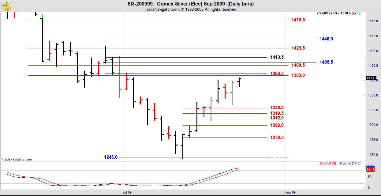Tuesday’s T.03 Sell signal in Silver was elected on Wednesday and failed. Always take the stop and reverse at the point where an outside bar on the daily chart occurs.