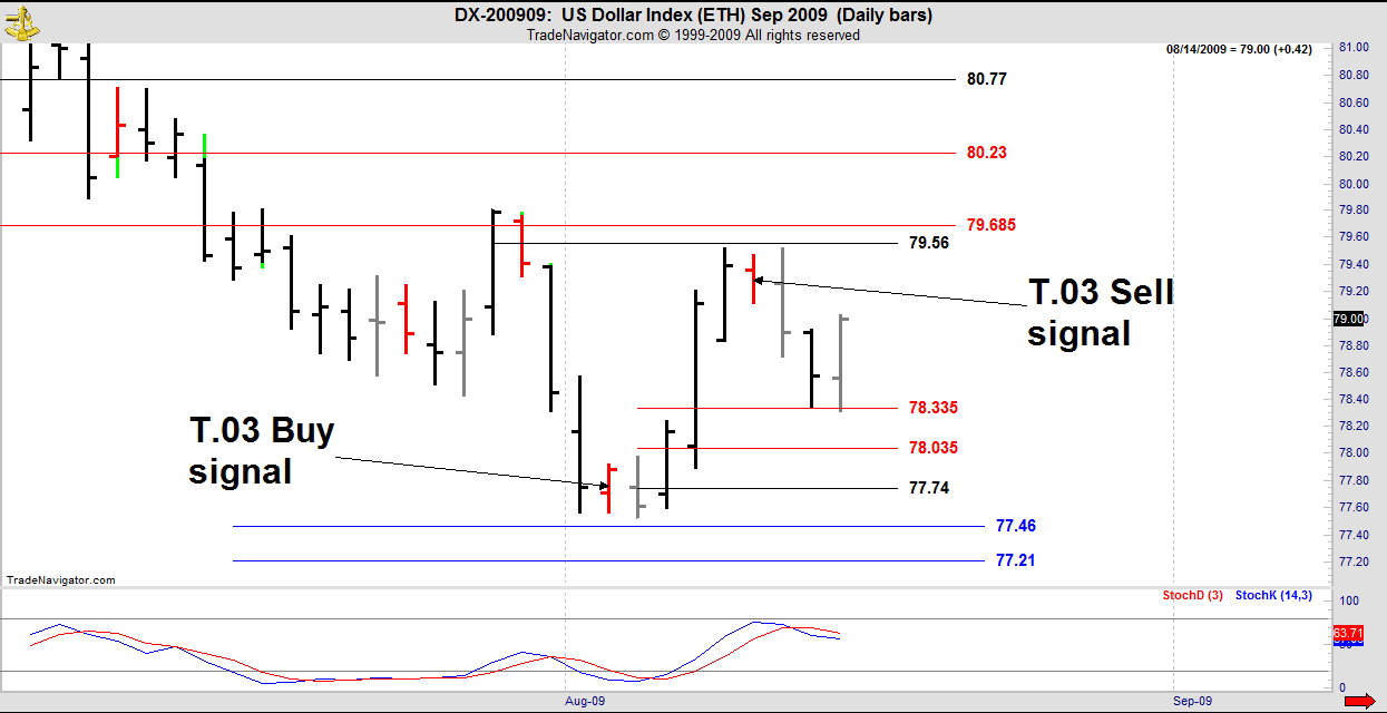 Two nice T.03 trades in this market. We have no foreknowledge of where these moves will go, so always move your stop to protect profits.