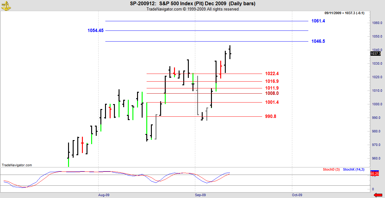 This little horror is the December contract in S&P, which became the front month on Thursday. Very gappy and needs a few days of solid trading to settle down. Index chart is preferred on these occasions.
