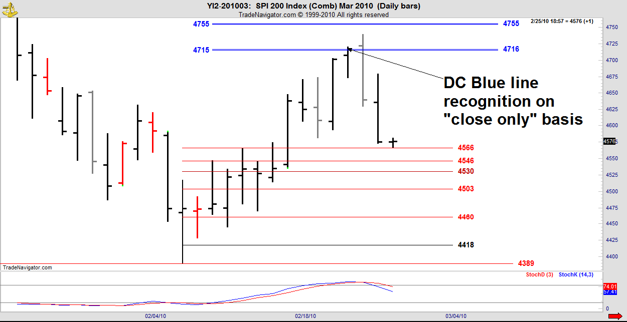 Nice example of DC target recognition on the “close only” basis. Not as common as the normal high/low bar recognition, but equally valid. See DC Trading Manual.