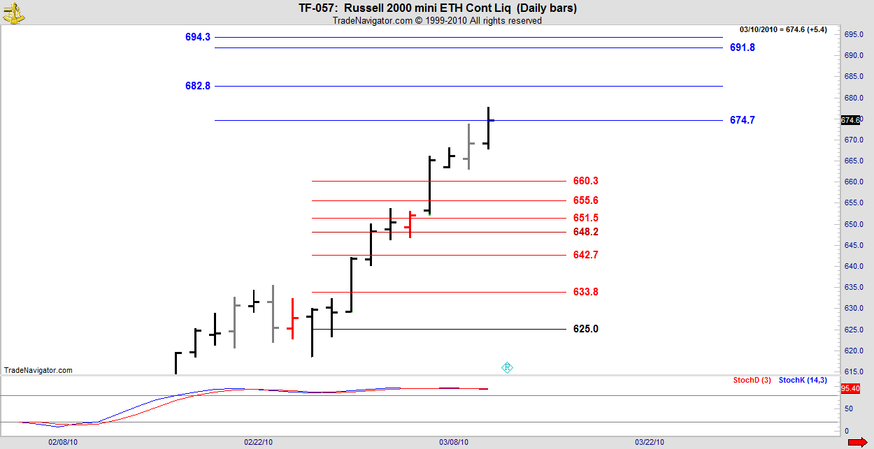 June becomes the front month today, Thursday. As this is the continuous contract there will be a gap and a jiggle for a day or two. Front month contract in Russell is too thin and I am forced to use this chart.