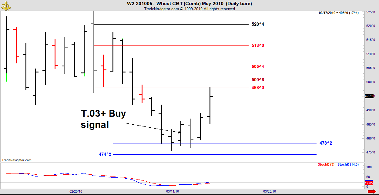 Friday’s T.03 PLUS Buy signal took a while to get traction. It’s nice now. The stop goes under the setup bar.