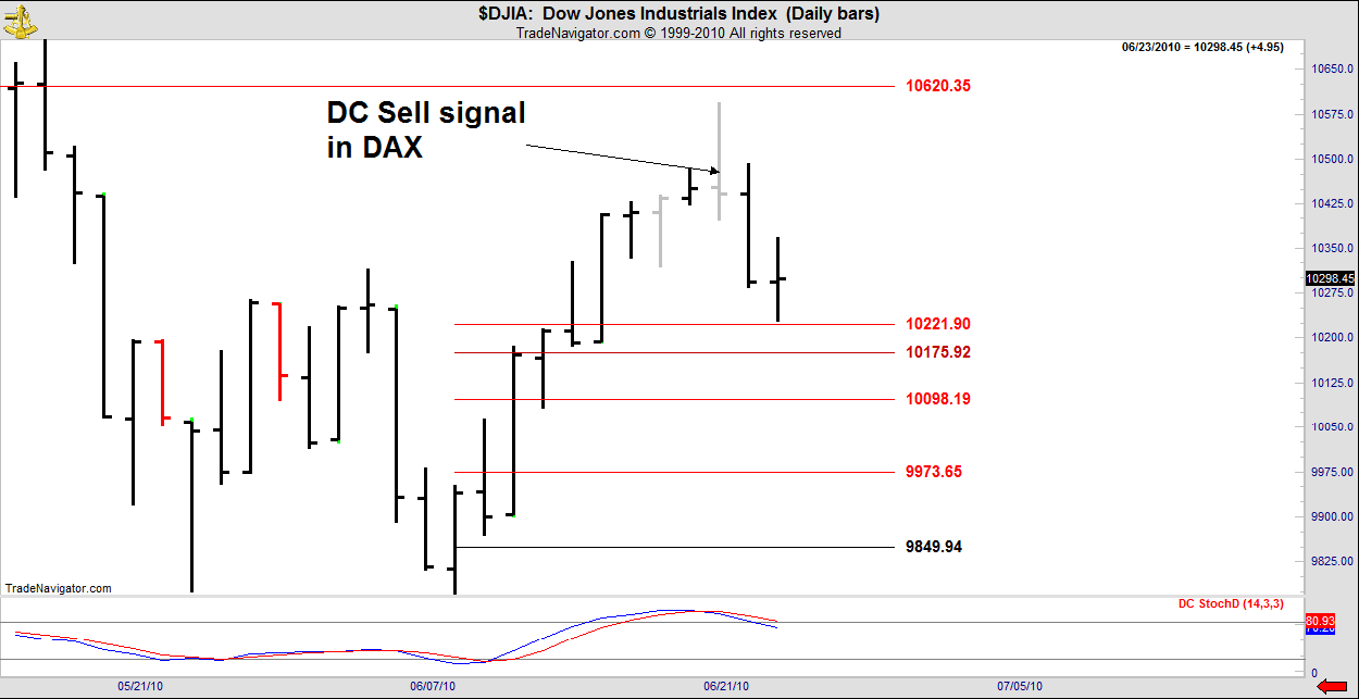 Here’s the DC Sell in DAX for Monday being elected in the Dow.