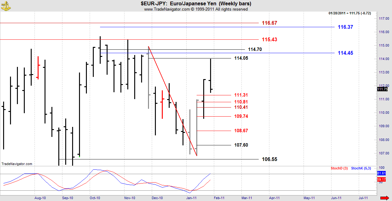 Just 4 ticks variance at last week’s high. Not bad for a weekly chart!!