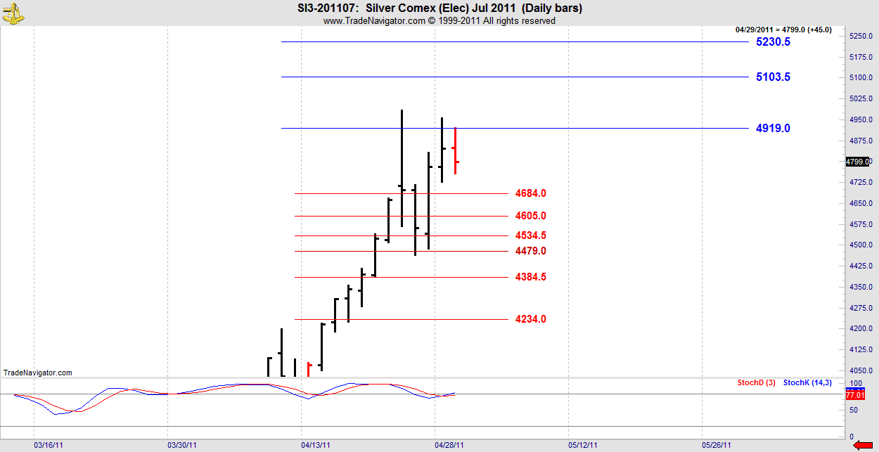 This is the July contract in Silver which becomes the front month on Monday. Contract rollover is a likely time for trend changes in commodities.
