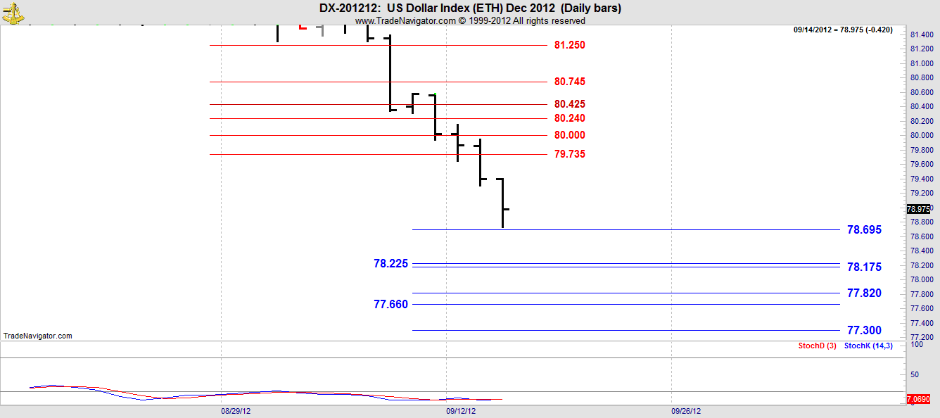This is the December contract which becomes the front month in DX today, Monday. Not much data in this contract so see $DX and weekly charts for the DC retracements.