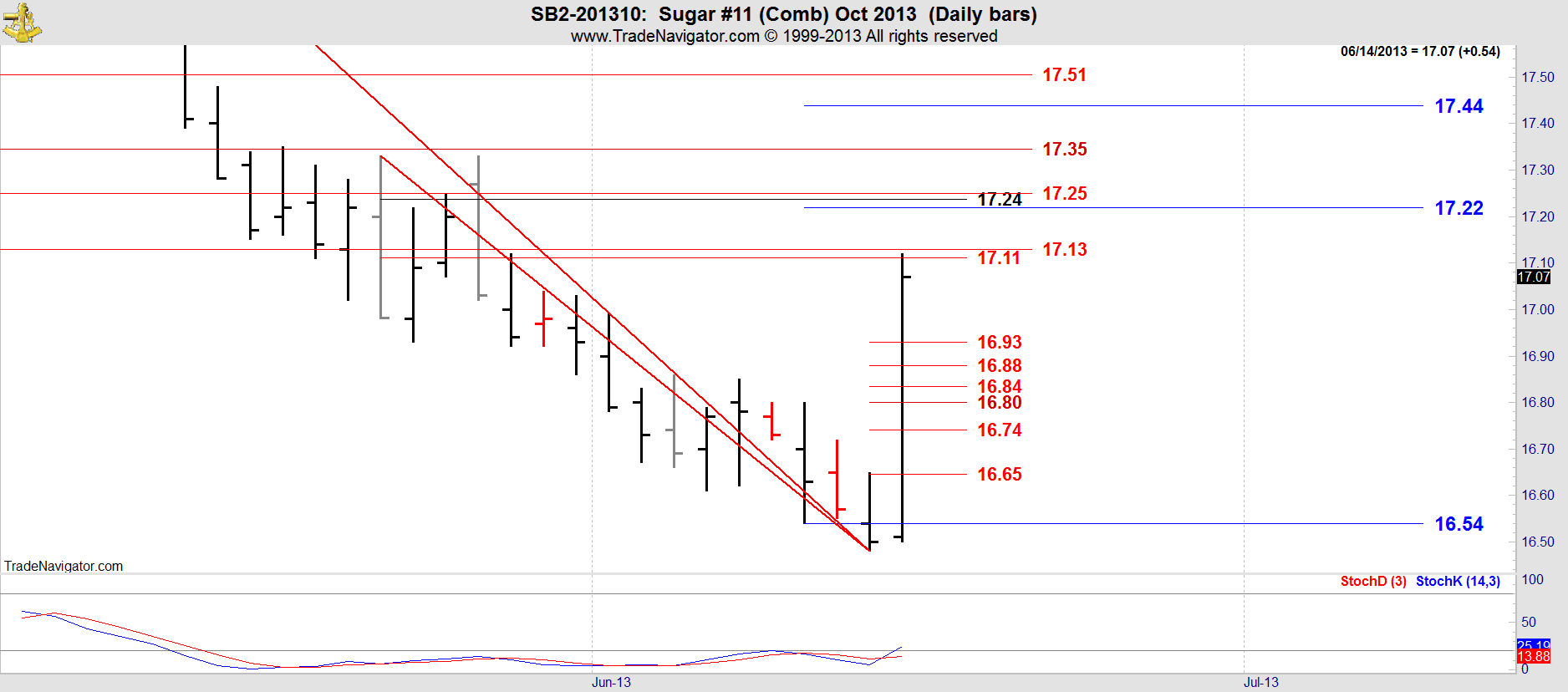This is the October contract in Sugar which becomes the front month today, Monday.