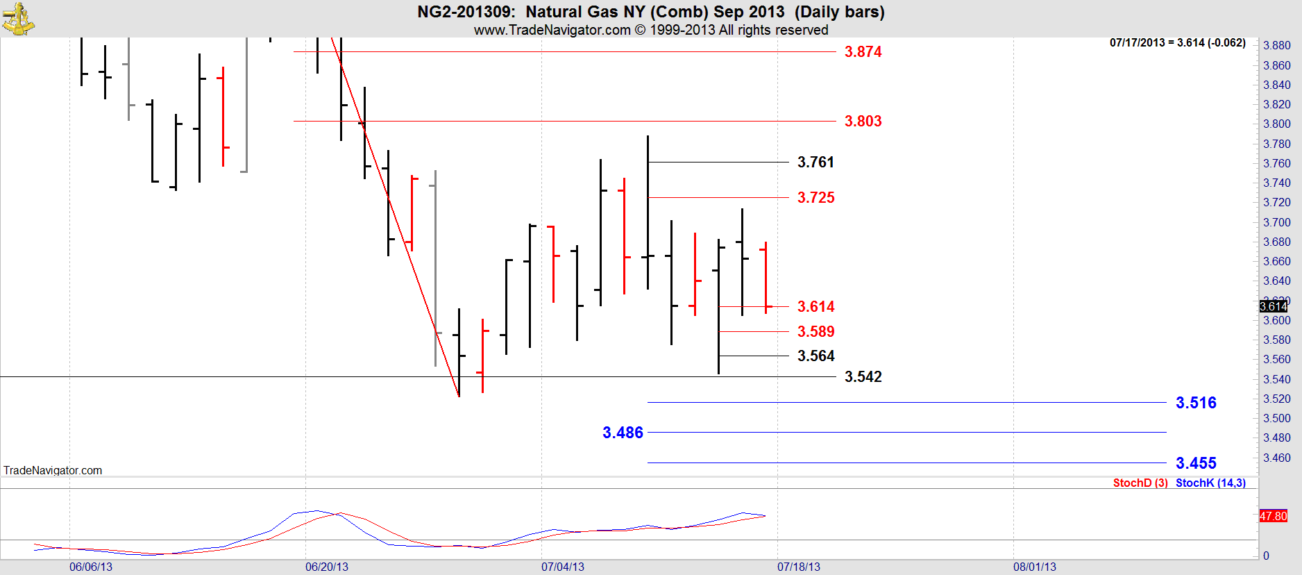 This is the September contract in Natural Gas which becomes the front month today, Thursday.