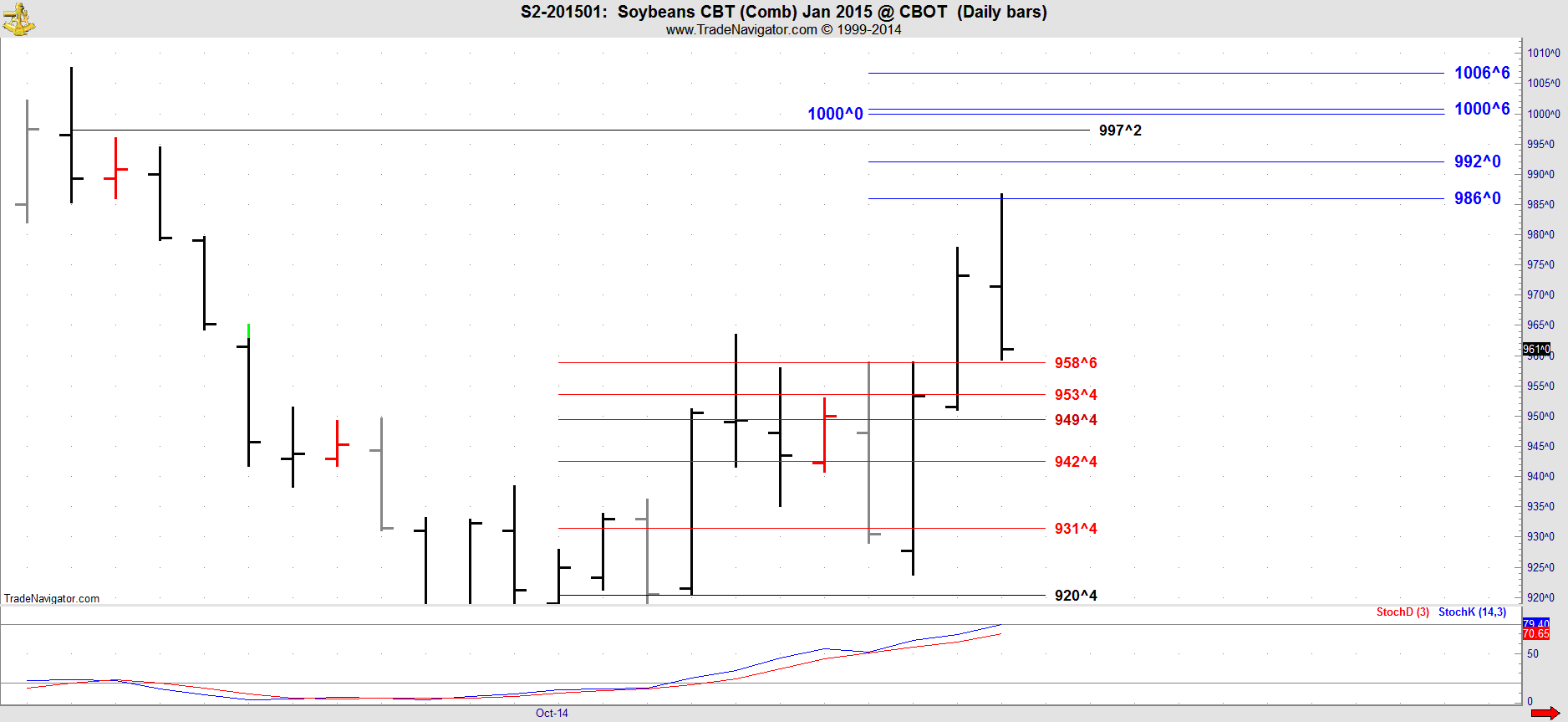 This is the January 2015 contract which becomes the front month in Beans today, Thursday.
