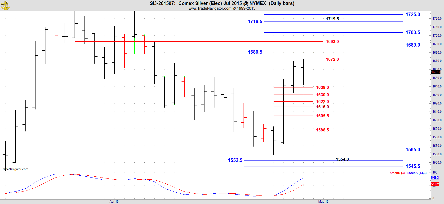 This is the July chart for Silver which is now the front month.