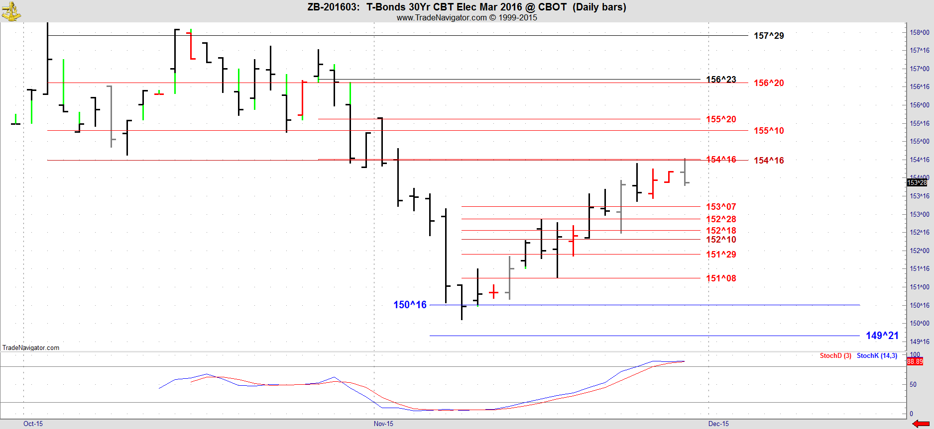 This is the March 2016 contract in T Bonds which is now the front month.