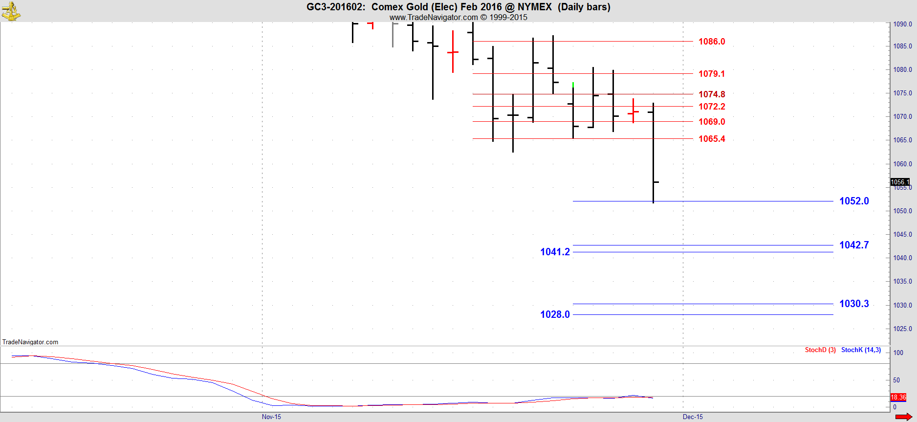 This is the February 2016 Comex Gold chart which is now the front month.
