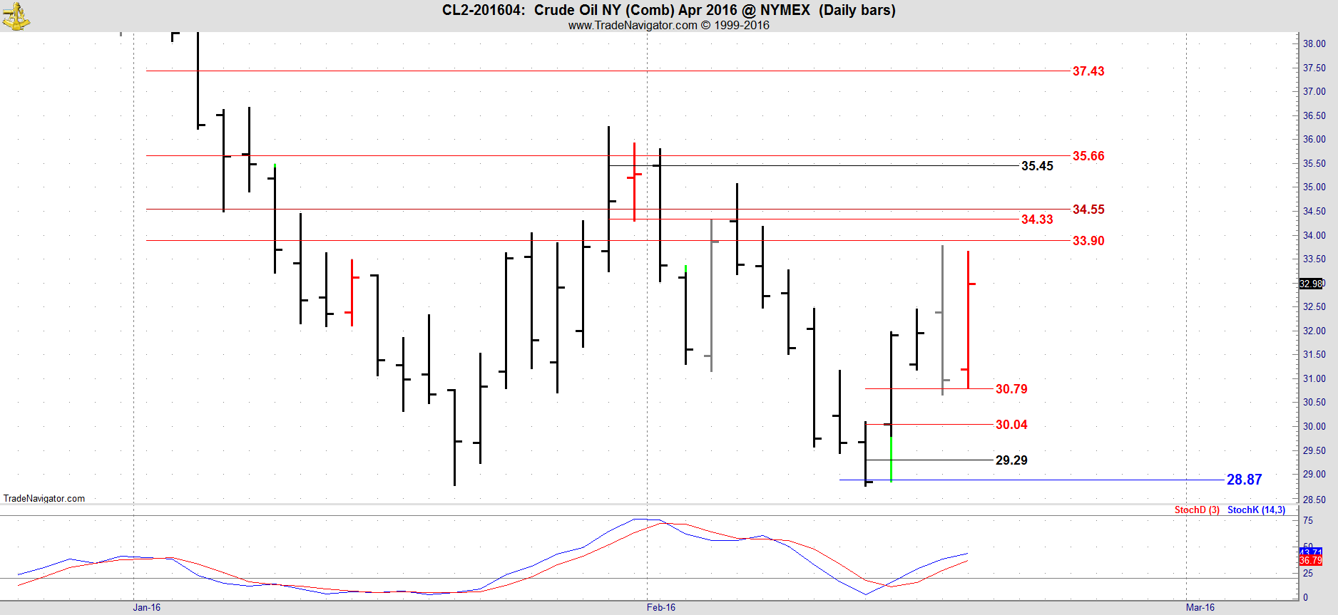 This is the April contract in Crude Oil which is now the front month.