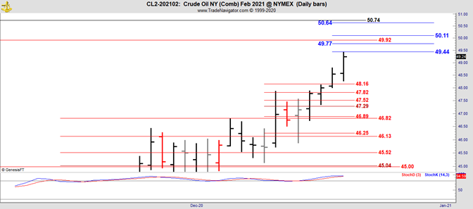 This is the February 2021 contract in Crude Oil which becomes the front month today, Monday.