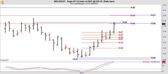 This is the July contract in Sugar which becomes the front month today, Thursday.