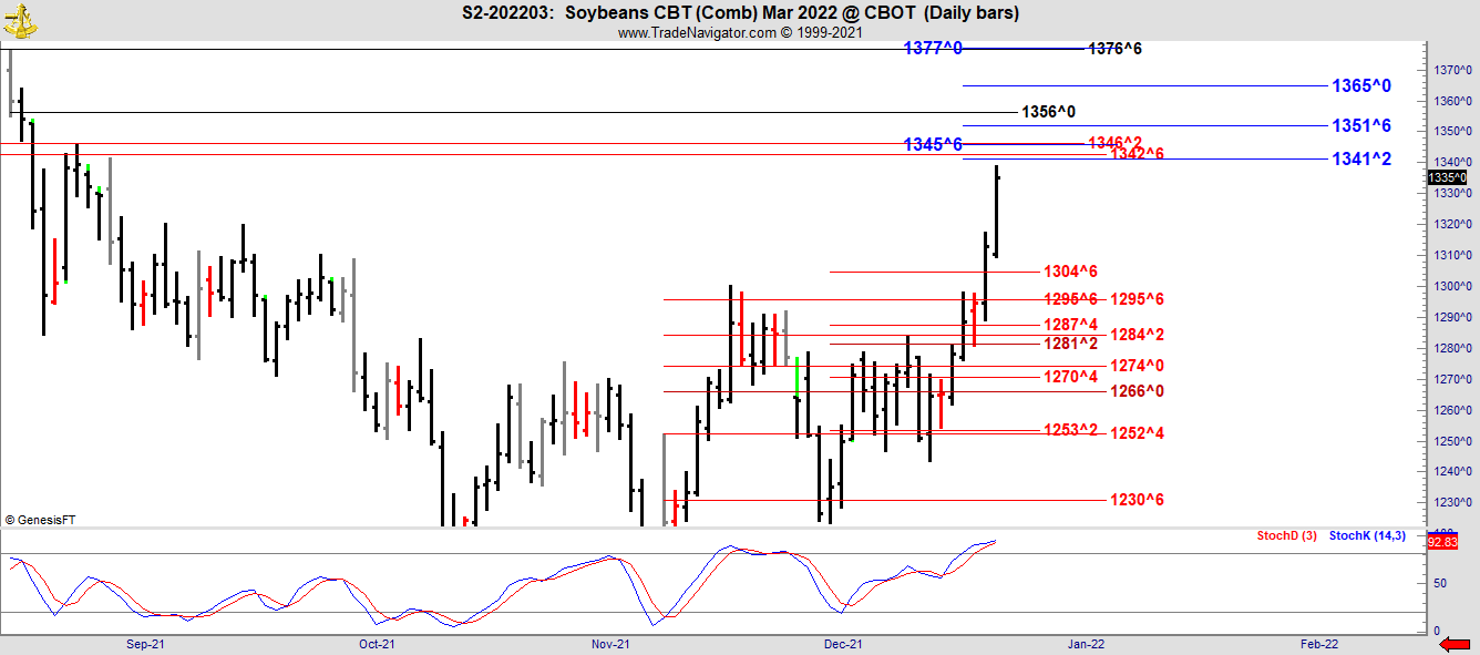 This is the March 2022 contract which became the front month in Soybeans today, Thursday.