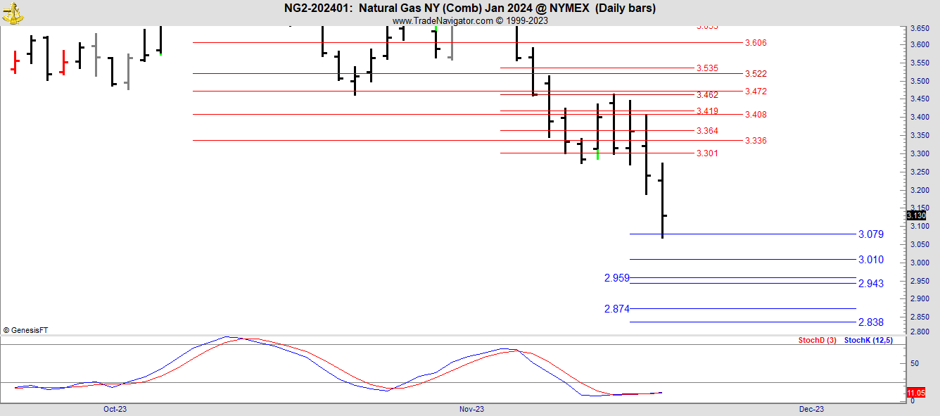 This is the January 2024 contract in Natural Gas which is now the front month.