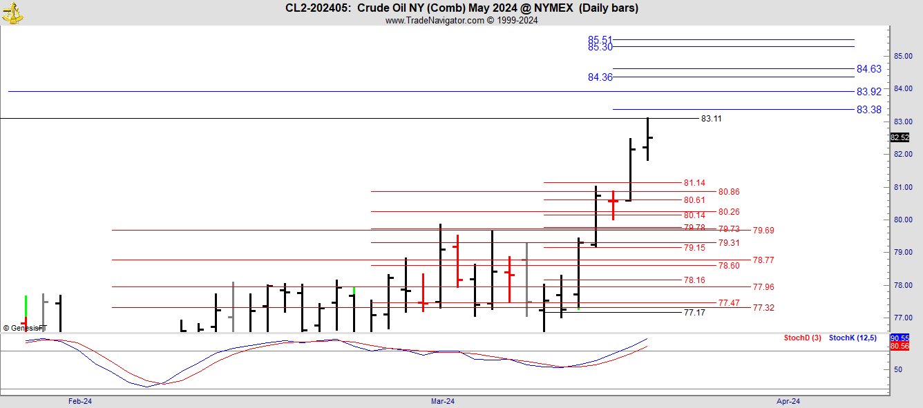 This is the May contract in Crude Oil which is now the front month.
