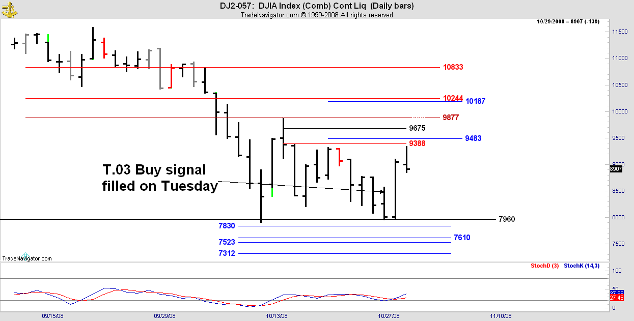 Perfect DC setup bar on Monday as well as having a T.03 buy signal. 1035 points from close to close for Tuesday! Use your DC rets to find the minor range.