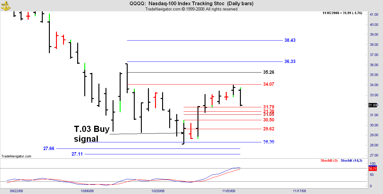 Tuesday’s high was just 6 ticks from the DC retracement and Wednesday had a T.03 sell signal in Russell. All these US equity markets are highly correlated so a T.03 signal in one should alert you to the probabilities of it being effected in others.