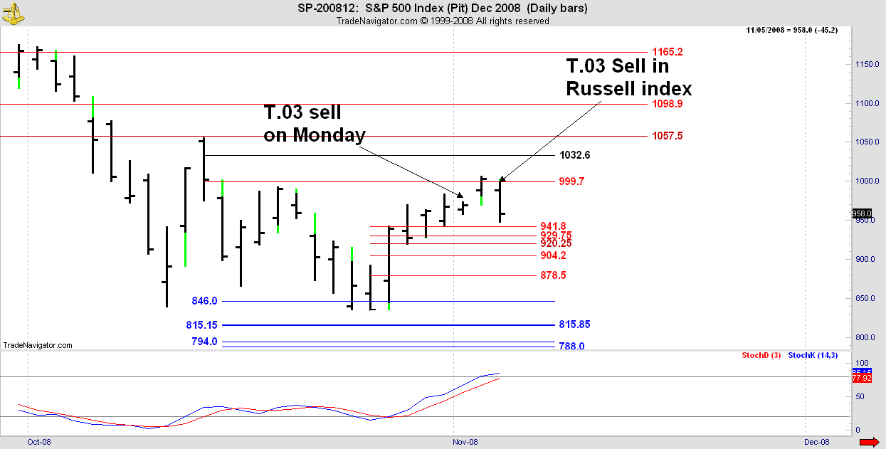 Monday’s T.03 signal was not elected on Monday or Tuesday BUT the T.03 in Russell for Wednesday turned all of the US indices down. US equity markets are highly correlated. A T.03 signal in one is an alert to watch for a reaction in the others.