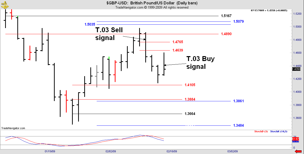 Friday’s T.03 buy against the slow stoch gave 189 points to its high from Thursday’s high. Worth having. You needed to move your stops to protect profits as I always advise. For those who can’t watch the market constantly, try using a 40-50 point trailing stop.