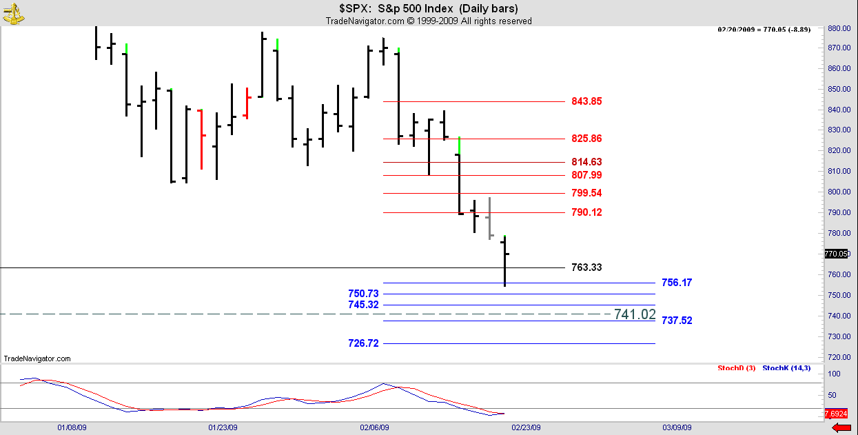 Still fighting to avoid closing below the DC black line at 763.33. The dotted line at 741.02 is the November low.