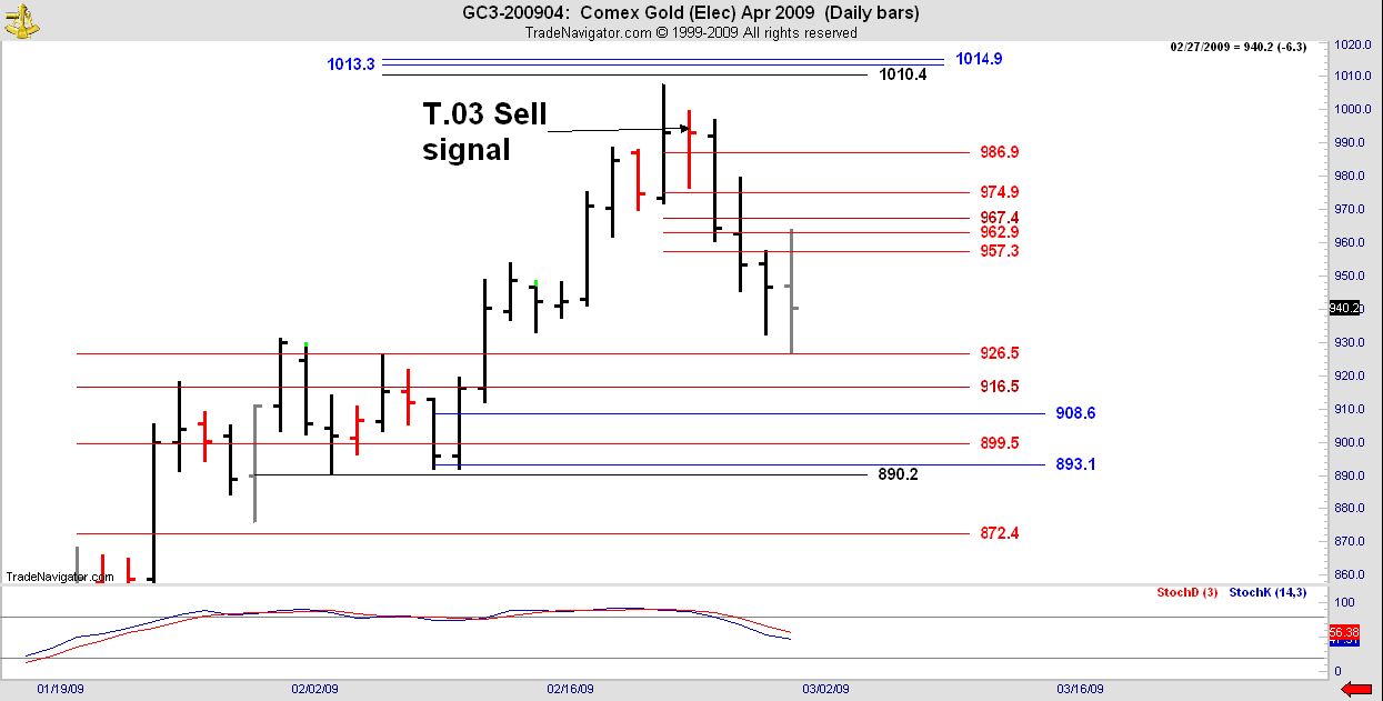 Got a fright near the DC black line! Most do. Friday’s outside day as it attempted to answer the T.03 Buy signal was nasty. Outside days are the trader’s torment and are usually losers. UGH!