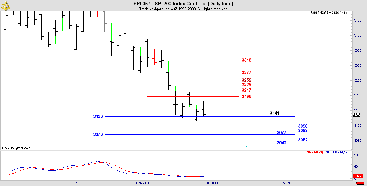 4 of the last 5 days have focused on the DC black line at 3141. Market is trying to avoid closing below it although a weekly close is more meaningful than a daily close.