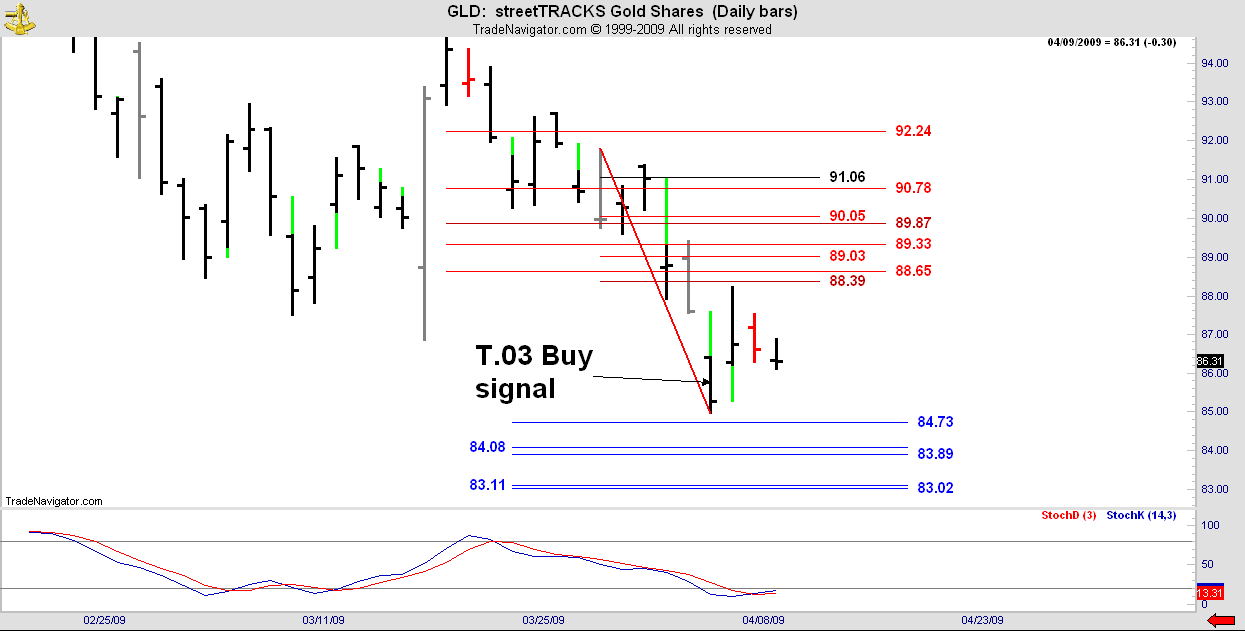 Just correcting the minor swing marked in red, so far. Tuesday’s rally came in response to the T.03 Buy signal from Monday last.