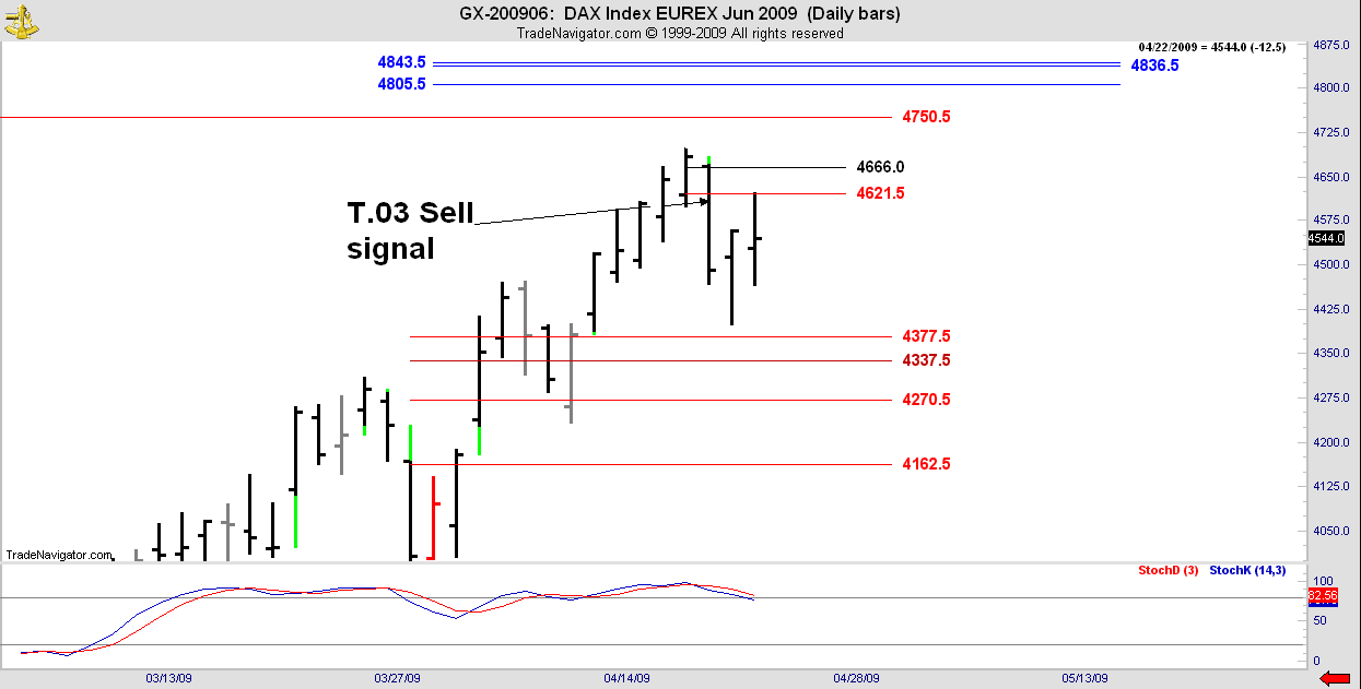 Monday’s T.03 Sell signal gave us some part of 268 points at 25 Euros per point, before reversing. A big trade. You may have a view about what the market is going to do but that view is likely wrong and your job as a trader is just to make money. That’s why I am always urging you to move your stops to protect profits. Hope you got a good chunk of this Rolf!
