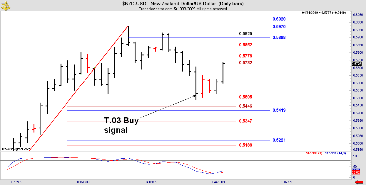 Good example of a T.03 Buy signal that was not elected within the 2 days that our protocol states, but that engineered a turn on the 4th day after the slow stoch got oversold.