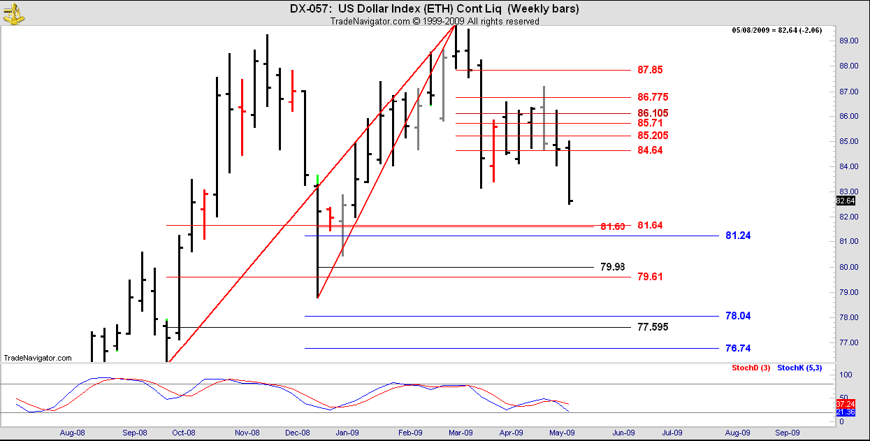 There are 3 possible swings for this market to correct and DC retracements for the first 2 are on this weekly chart. We also have an overbalance of time for the down move and an overbalance of price will confirm the major trend change and trouble for US Bonds.