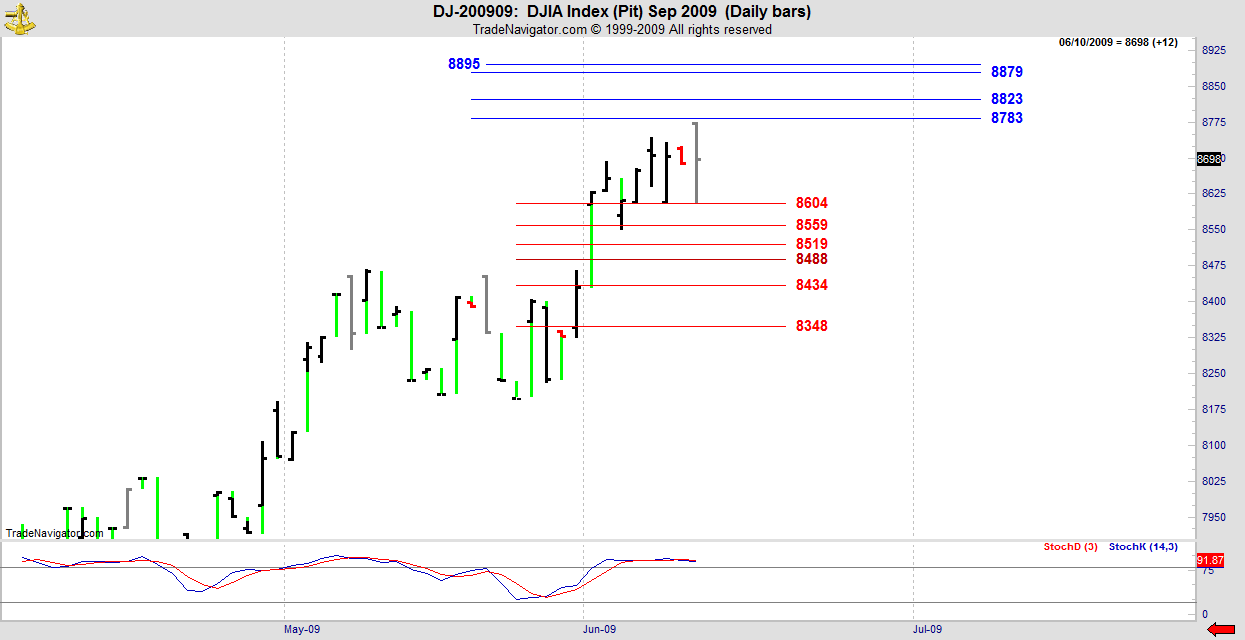 This is the September contract in the Dow which becomes the front month today, Thursday. Very gappy so may take a few days to settle down.