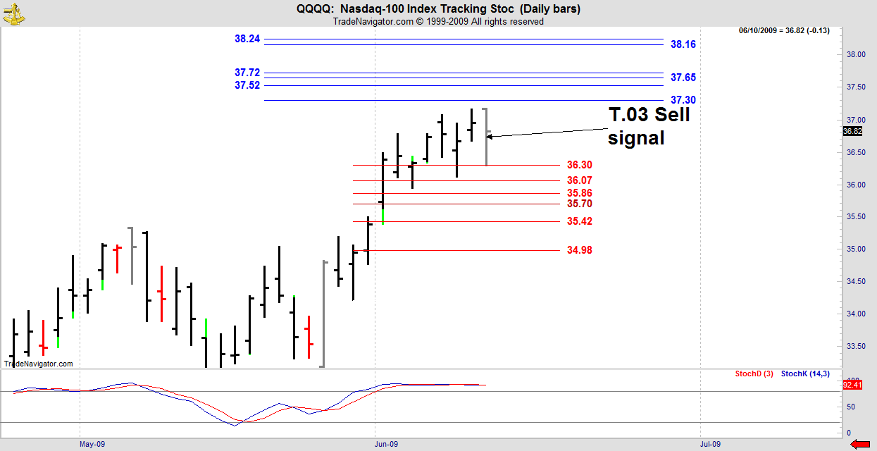 Wednesday’s T.03 sell signal only went to the 29.7% retracement of the minor swing. Had to move that stop fast! Still holding a strong position.