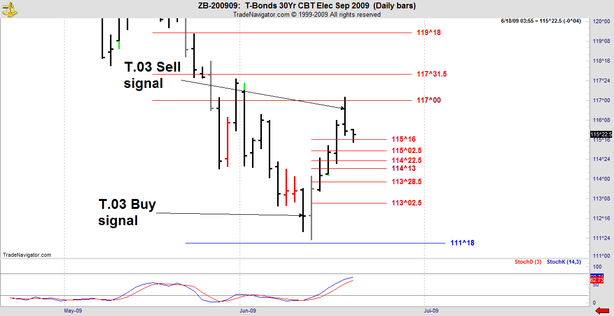 Fast turn at the 50% retracement in response to the T.03 Sell signal.