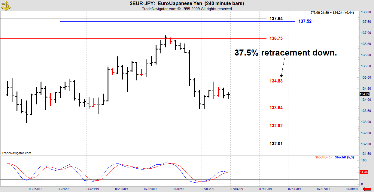 In this chart I have left on the old 37.5% retracement to show how, when the market ignores a DC number it will often go back and use it from the other side.