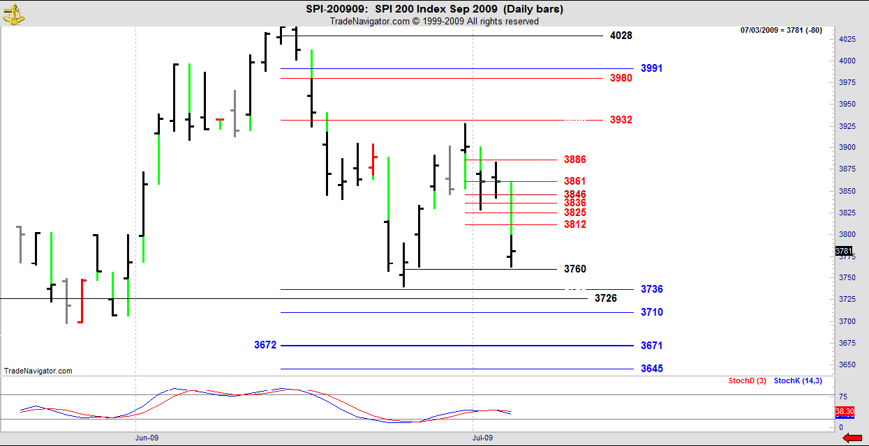 These big gap down moves like Friday’s may look emotional and dramatic but they still must conform to the Danielcode which controls all markets. Here’s Friday’s drop on the SPI gapping into apparent space but making its daily low just 2 ticks from the famous Danielcode black line. Good enough Helen? I’m in Omaha, Nebraska where the rain continues but 4 July fireworks are starting soon!