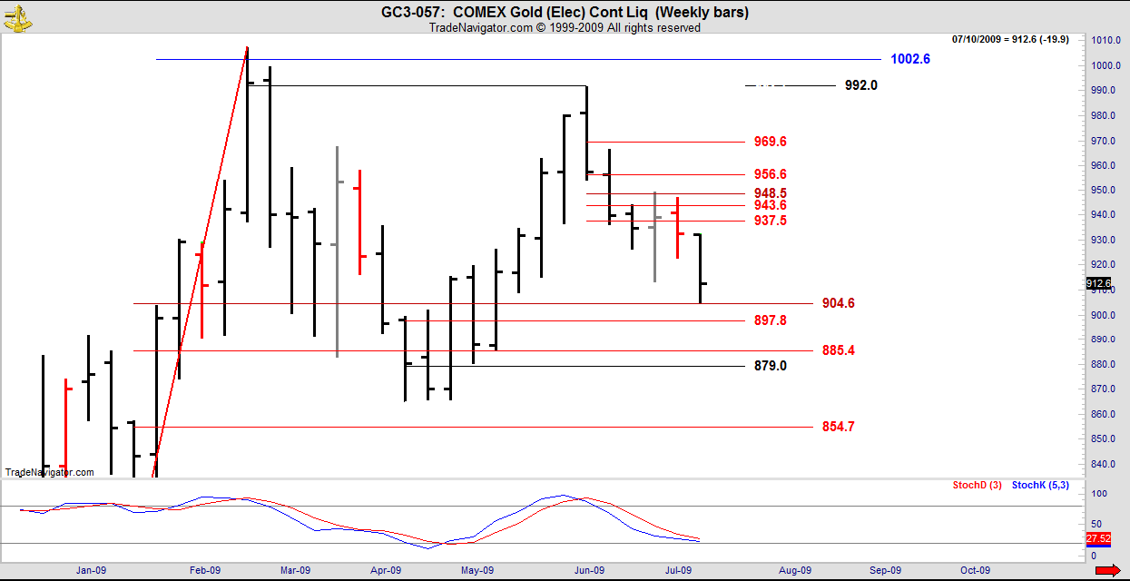 Last week’s low was 904.8 against the DC retracement at 904.6. Pretty neat to have just 2 ticks variance on a weekly chart.