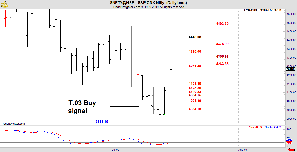 Friday’s T.03 Buy signal in NIFTY didn’t bite until Tuesday. Many T.03 signals are early and morph into a standard DC reversal on days 3 or 4, so it is worthwhile watching for this.