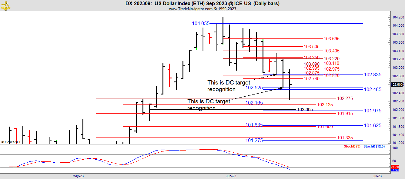 This is the September contract in the DX which becomes the front month tomorrow, Thursday.