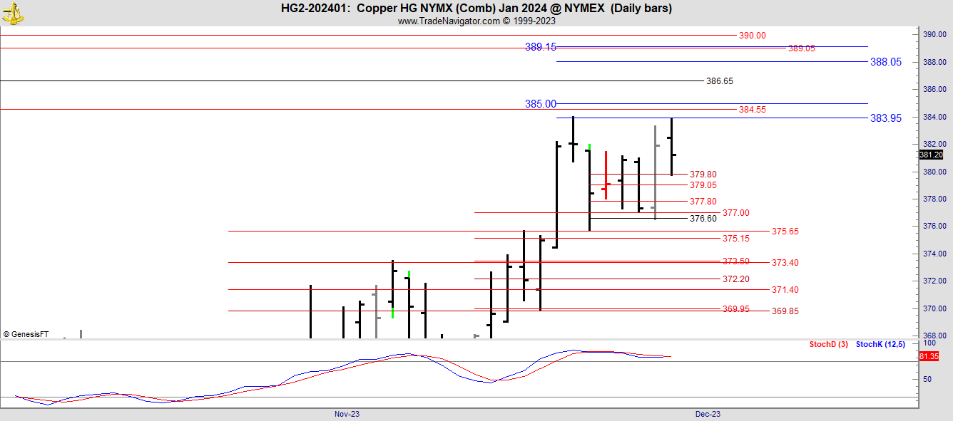 This is the January 2024 chart in Copper which is now the front month.